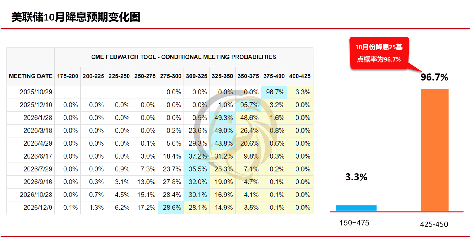 10月议息预期为何如此一致?本次美联储利率决议市场一致预期降息25基点非常之高,这主要原因在于: