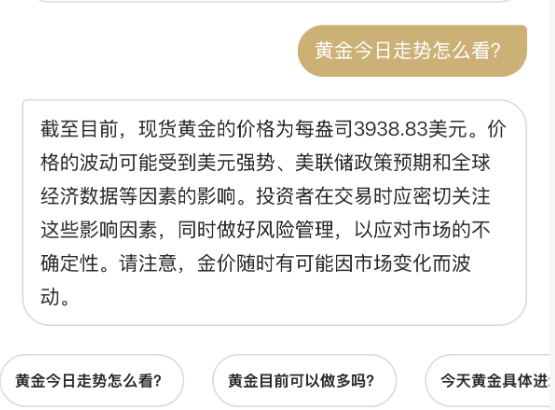 不过现在,AI大模型正改写黄金投资的玩法——黄金投资已迈入智能化新纪元,能为投资者提供更精准的个性化服务。