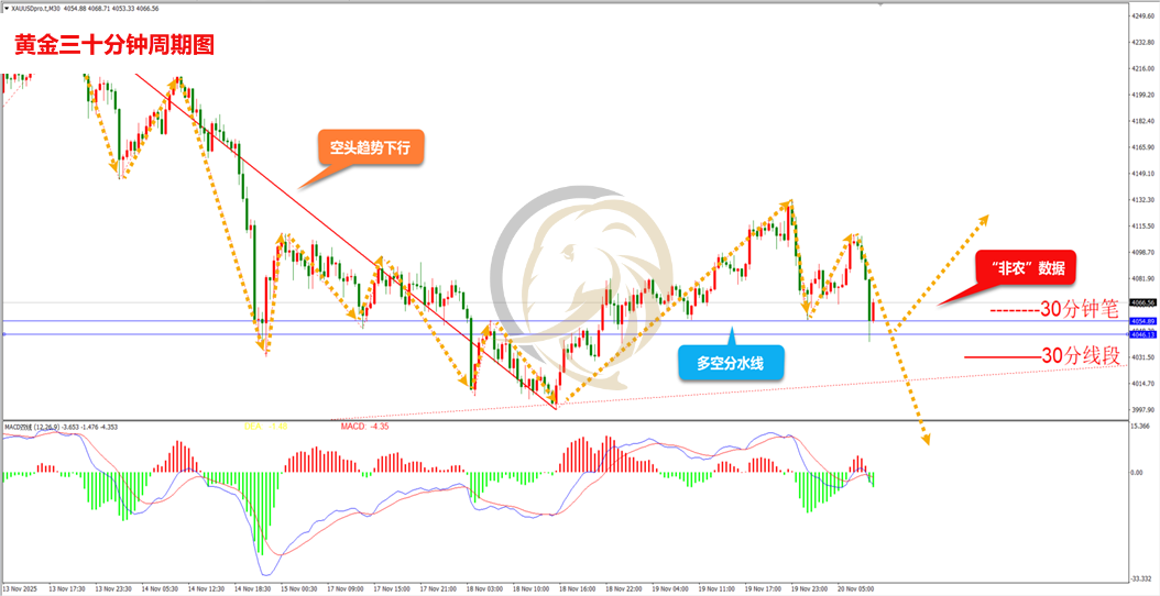 昨日,现货黄金多头持续拉升,多头逐步上涨至4132附近,其后空头高位跳水快速回落。由于美元指数强力拉升,导致金价承压逐步加大,外加美联储1会议纪要偏向鹰派,更是让美元指数刷新了近两周的高点,打压了黄金的多头士气。早间多头反弹后,空头依然还在快速打压,但最终守在4046上方。日内晚间,由于美国政府停摆,劳工统计局宣布10月失业率永远无法公布,10月和11月非农报告合并至12月16日发布。美国9月非农数据2公布后,预计市场将迎来巨大波动。
