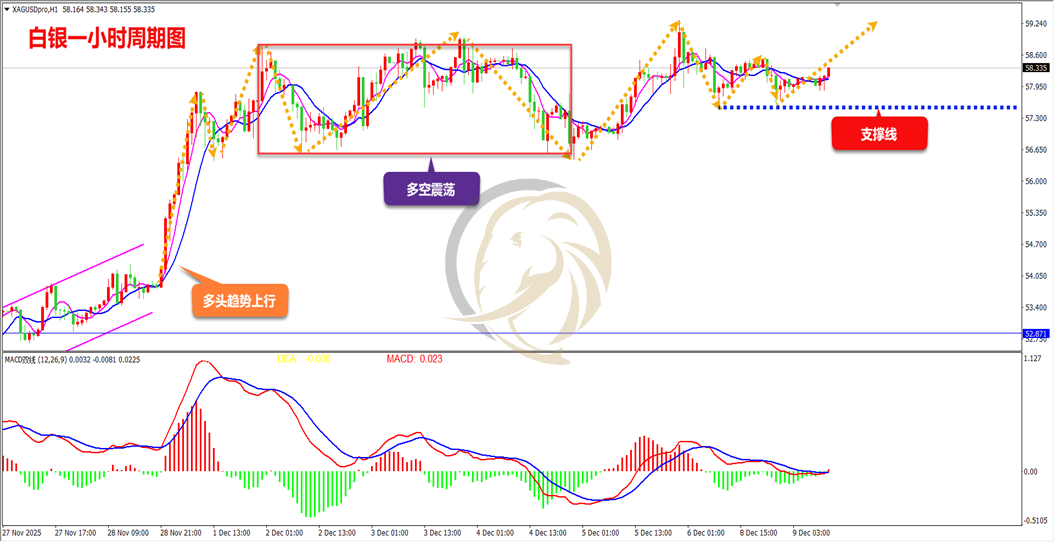 多单:58.200附近尝试多单,止损58.000,目标58.400、59.200附近。(6小时有效)