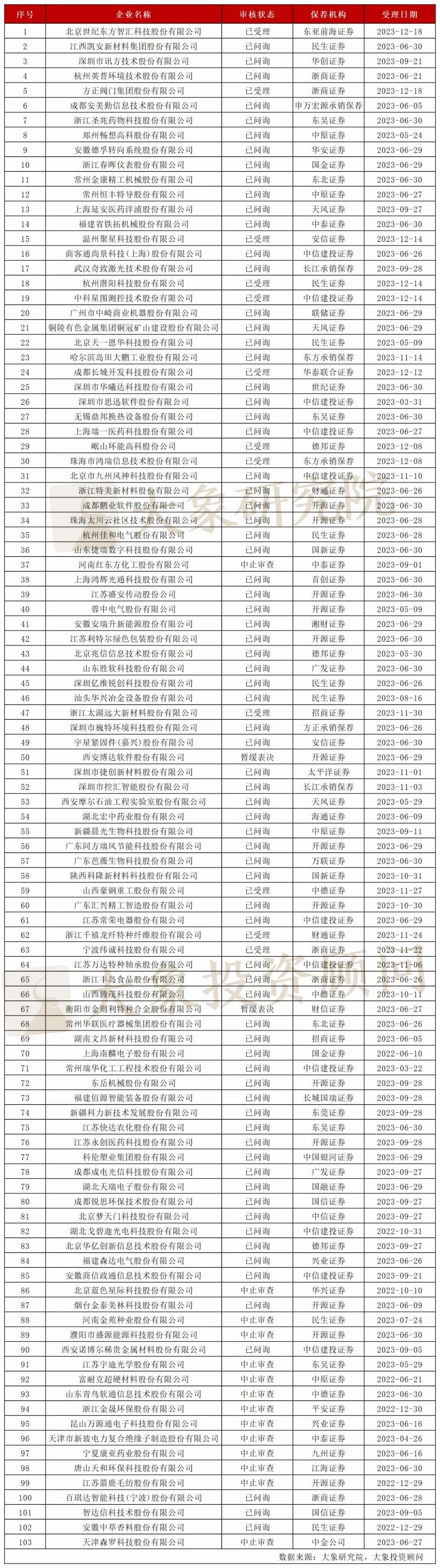 各板块IPO排队企业名单如下(截至12月19日):