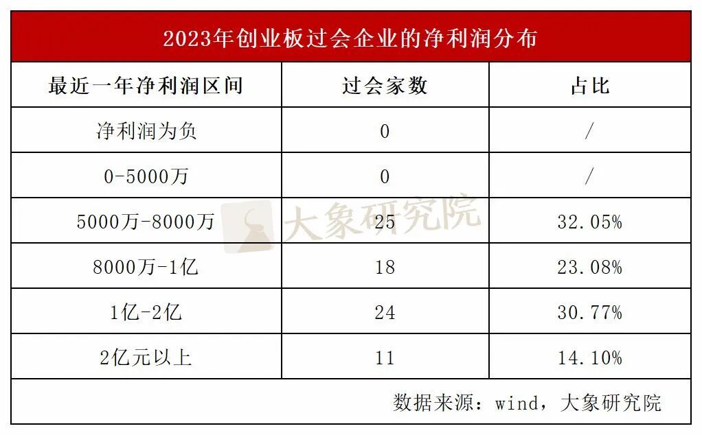 聚焦“三创四新”的创业板没有净利润亏损企业过会。值得一提的是,2023年下半年,创业板有46家企业撤回,有22家企业最新一年归母净利润为小于8000万,占比47.83%。因此在2023年企业创业板IPO,净利润最好达到8000万。