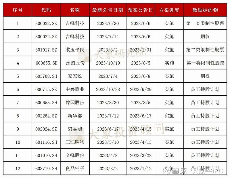 2023年证监会行业下零售业共计102家上市公司,实施通过12次股权激励。其中科创板0家,创业板3家,沪主板6家,深主板3家,北交所0家。