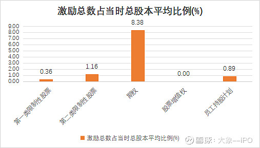激励股数占总股本比例(本文简称为“激励份额占比”)体现出激励草案的激励力度,从激励份额占比来看,吉峰科技2023年6月6日预案公告的期权激励计划激励份额占比最高,达14.48%。总体而言,零售业2023年激励草案激励股数占总股本比例最高14.48%,平均2.07%。