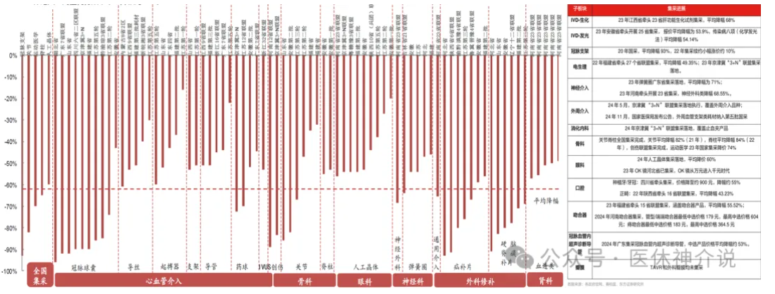 集采范围基本全覆盖:自2019年以来,国内高值耗材带量采购品类逐渐完善,目前除主动脉介入/外周介入/神经介入部分产品外,高值耗材领域基本实现全部集采。