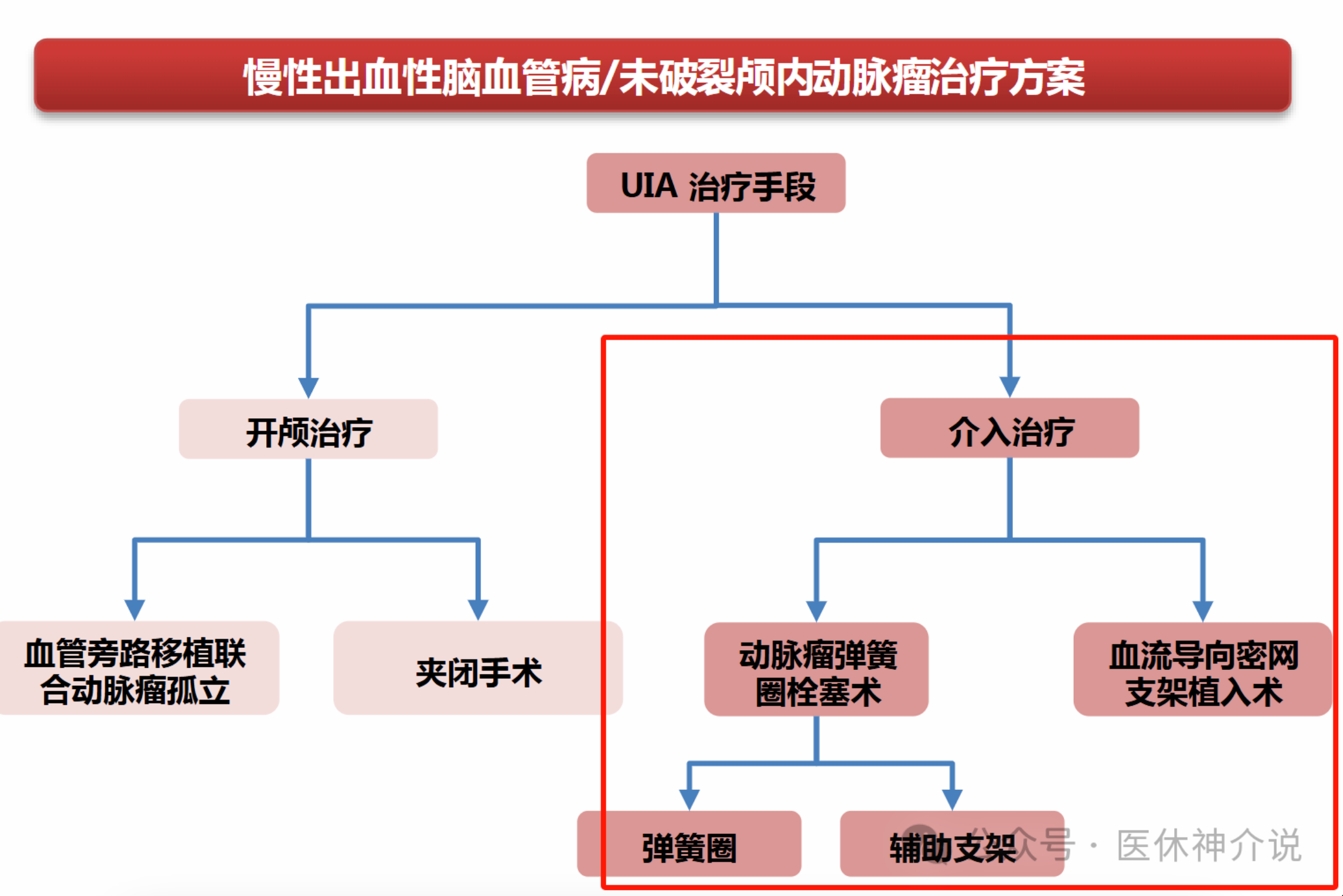 目前动脉瘤血管内常见的介入治疗方法:弹簧圈填塞术,支架辅助栓塞术,密网支架植入术几种。