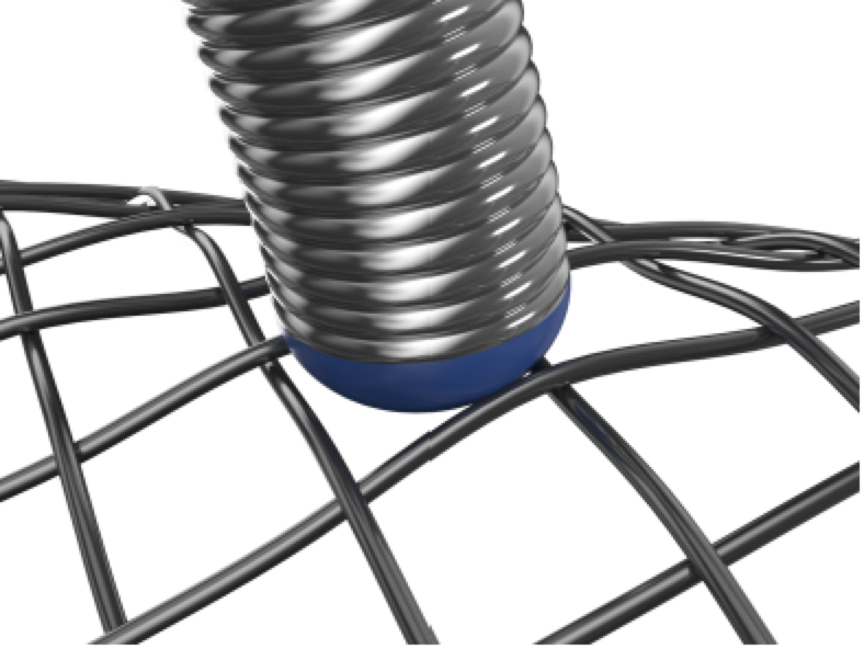 该装置具有高密度的网孔设计,以避免弹簧圈疝出和可能存在的缠绕。