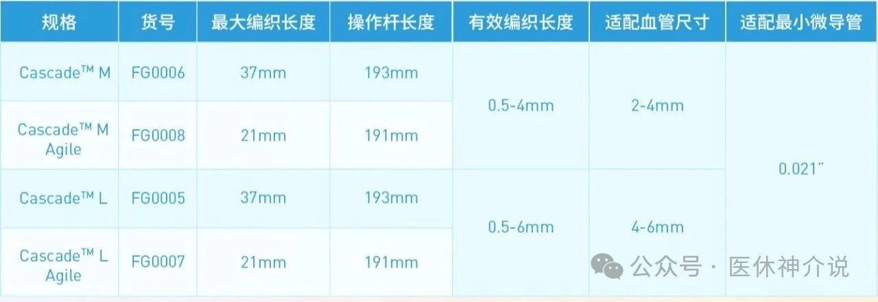 Cascade Agile™对编织长度进行了调整,针对具有挑战性的解剖结构和动脉瘤进行了优化。该型号是Cascade产品系列的最新成员,提供了更多的治疗选择和可能性。Cascade四大型号均可通过.021英寸微导管。