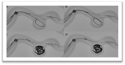 该装置在弹簧圈栓塞颅内动脉瘤期间提供非闭塞性支撑。