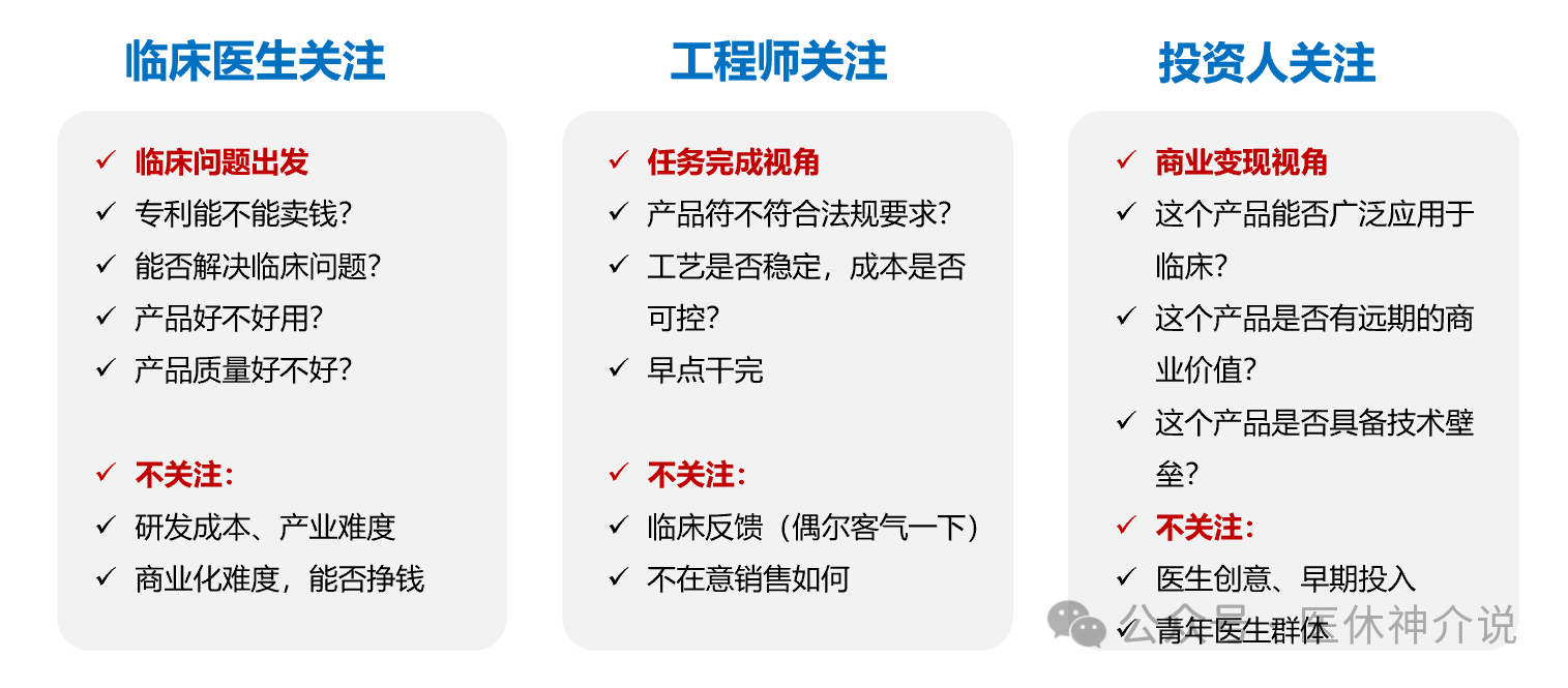 前面讲到的“创新转化”,很多是临床医生发起需求,然后找对应的器械企业,CDMO平台或者大学/医院的概念验证中心来实现。不仅仅是临床医生,国内医疗器械创新转化效率整体不高。