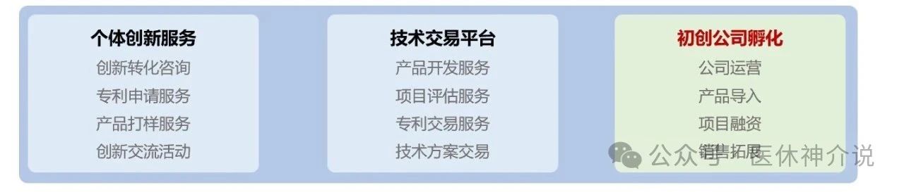 所以国内目前亟需可以打通上下游产业链的医疗器械创新转化平台,而医格创新中心的解决方案是把自己变成一个“技术交易平台”,高效地撮合多方合作,完成从概念到商品的快速转化:不再局限对临床医生的服务,个体可以是器械代理商,临床医生和研发工程师或者是一个行业小白;从转化到交易,不用按部就班的试错,而是可以选择成熟的技术路径快速实现产品商业化;除此之外,医格创新中心还可以帮助初创公司完成从0-1,从1到10的起步。
