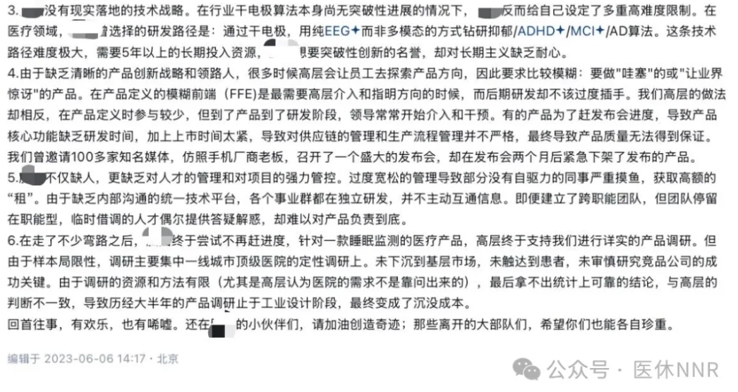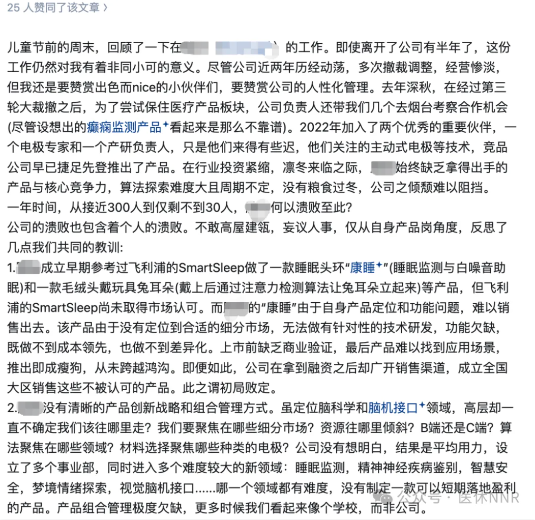 最近在整理脑机接口领域的相关企业,偶然发现了一篇两年前发表的一篇帖子,作者在公司离职前写下了一份反思。
