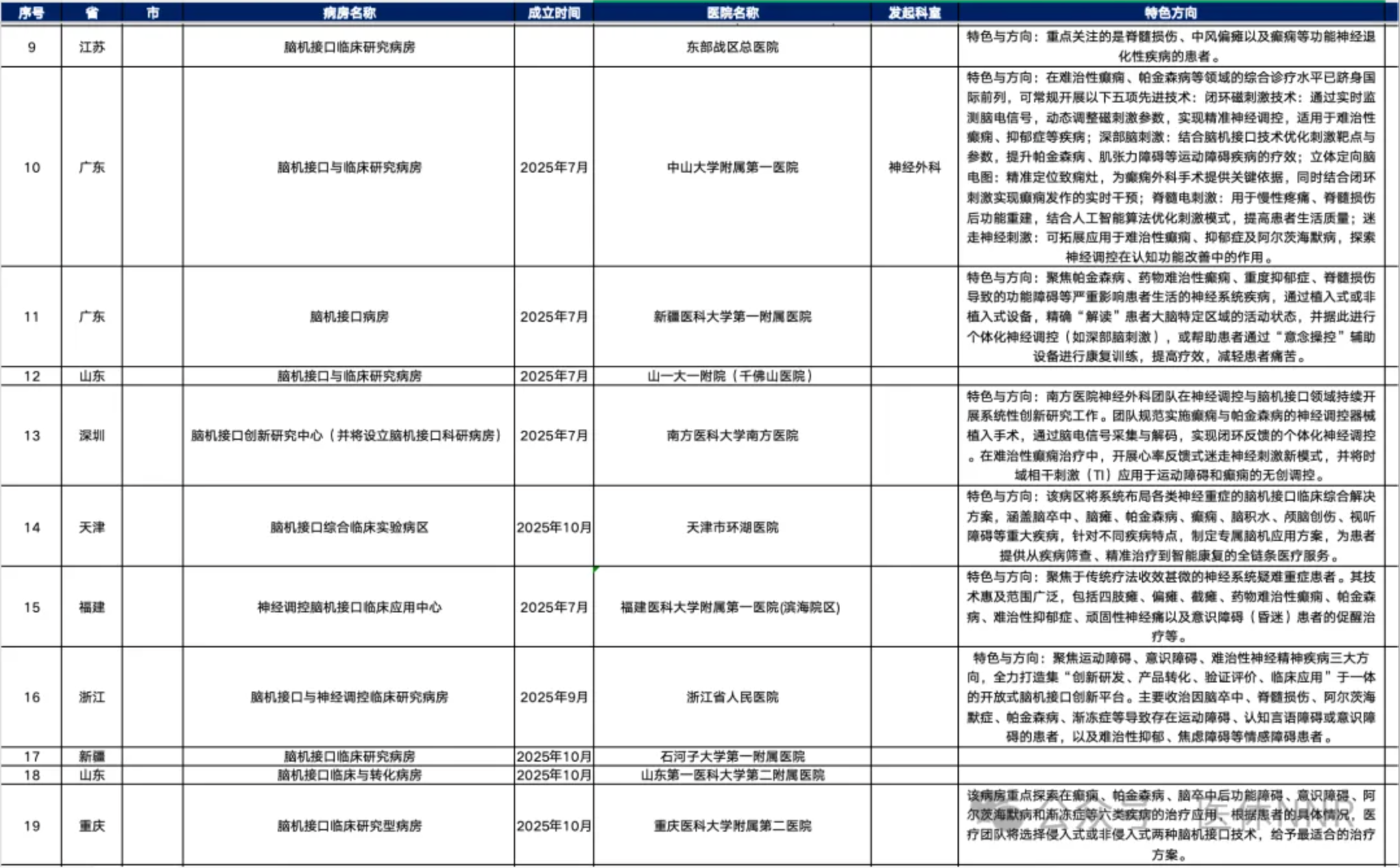 如“脑机接口临床评估与转化中心”“脑机接口创新转化中心”“脑机调控临床转化研究中心专属病房”等。