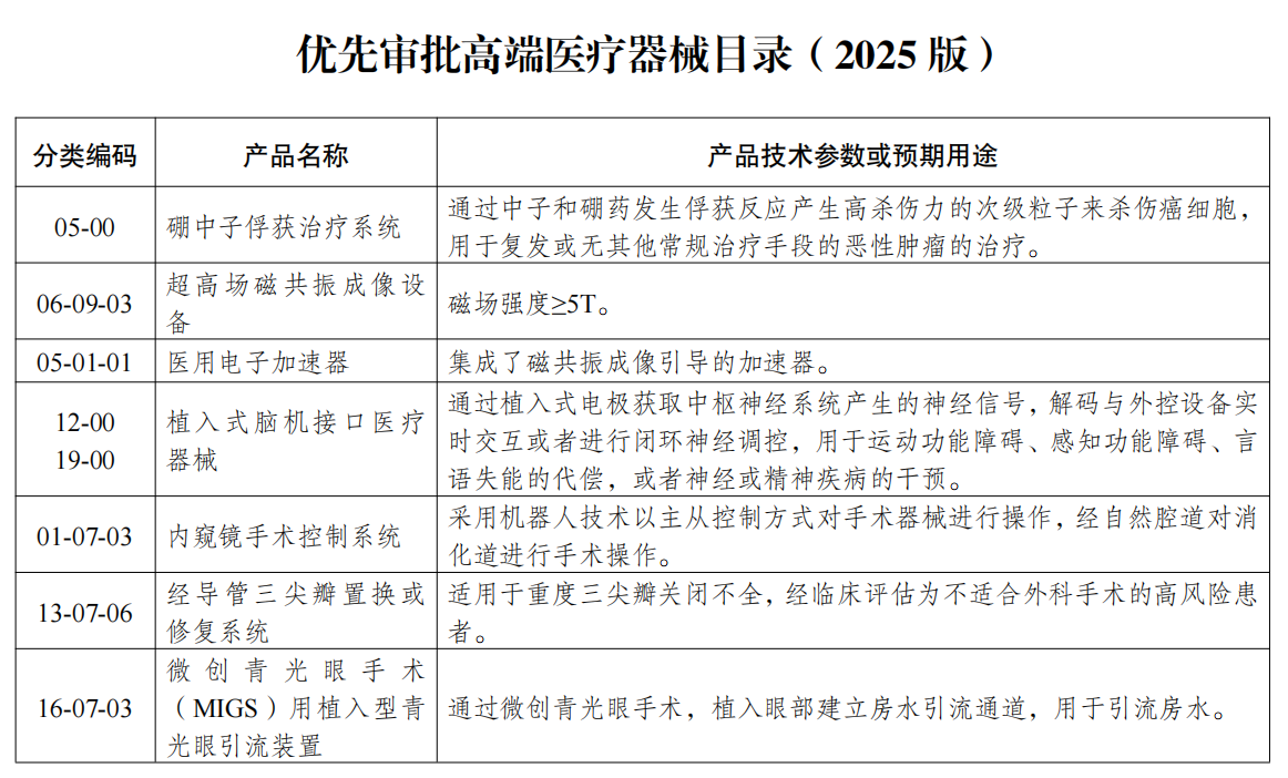 更值得关注的是附件《优先审批高端医疗器械目录(2025版)》本身: