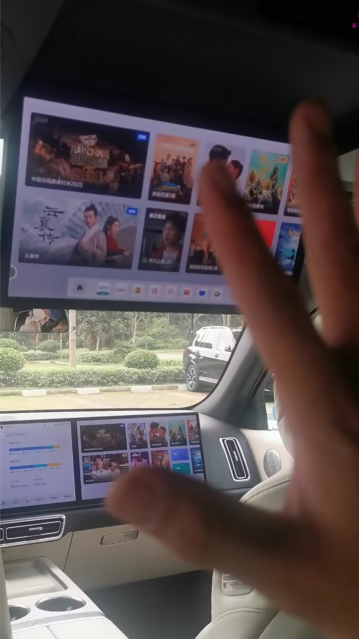 还有后排的娱乐屏,也可以手势打开,适合小朋友在后面看个动画片,