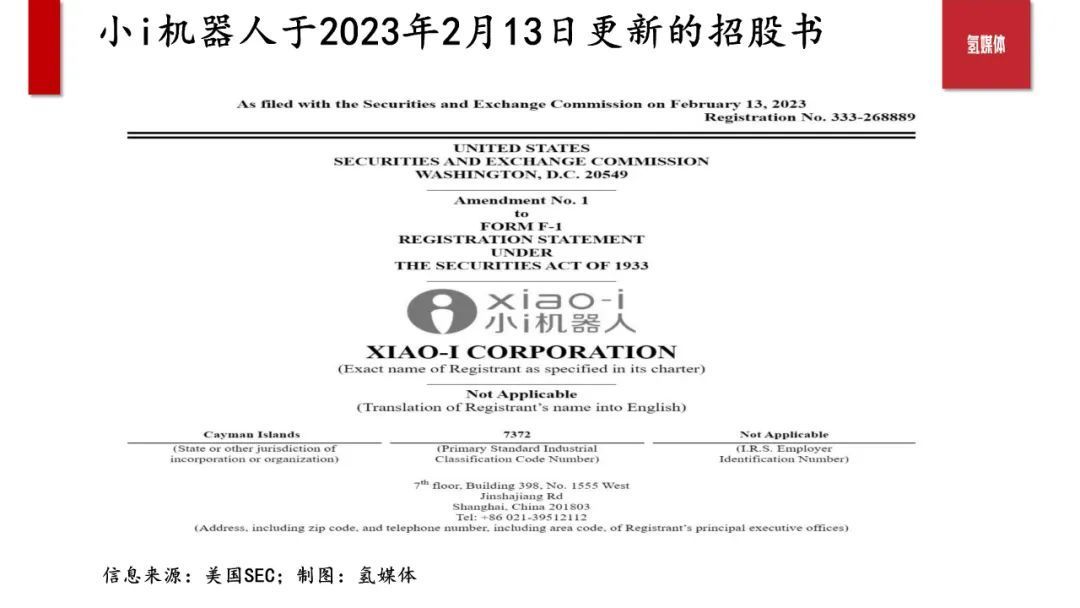 美东时间2月13日,美国证监会SEC在其官网更新小i机器人的招股说明书,即F-1报告。小i机器人是一家国产AI机器人行业先驱,在ChatGPT带火了AI行业的此刻加快IPO,显示了小i机器人对于高估值的预期。