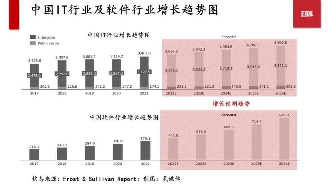 在小i机器人聚焦的中国市场方面,根据氢媒体的信息监控,中国IT及软件行业将自2022年后继续保持增长。中国IT行业预计将在2026年达到4.5万亿人民币的市场规模,复合年增长率将达到 5.8% 。而在软件行业方面,中国软件行业市场规模,预计将以17.3%的复合年均增长率,继续保持两位数的增长,并在2026年达到8400亿元人民币的市场规模。