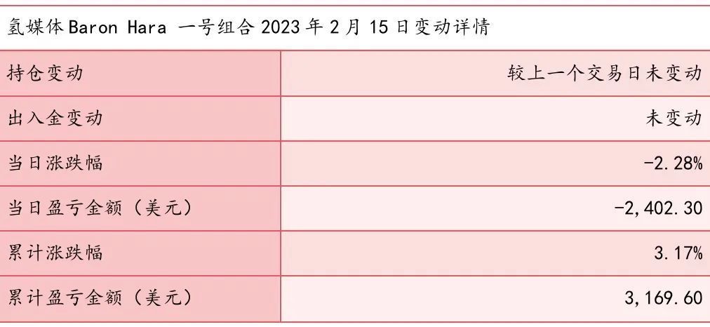 截止昨日(2023年2月15日),氢媒体Baron Hara一号组合的当日详情如下: