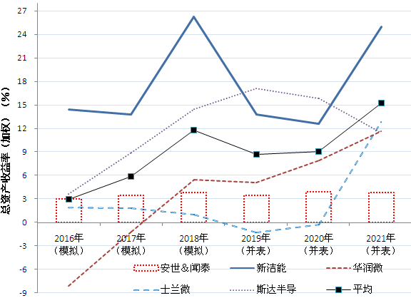 图12 2016年到2021年闻泰科技与同行业A股上市公司ROA对比