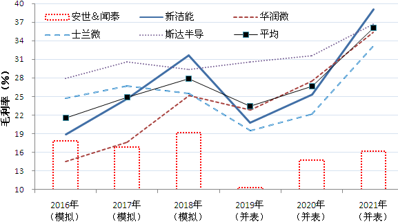 图14 2016年到2021年闻泰科技与同行业A股上市公司毛利率对比