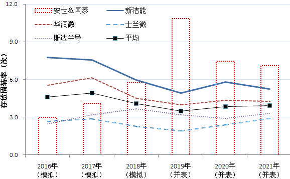 图17 2016年到2021年闻泰科技与同行业A股上市公司存货周转率对比