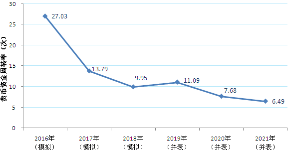 图19 2016年到2021年闻泰科技货币资金周转率走势
