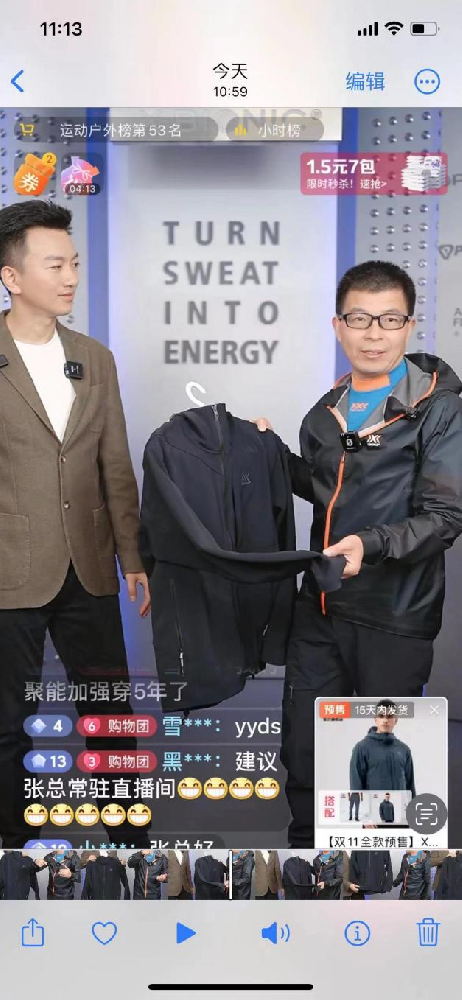 10月26日,运动品牌X-BIONIC的抖音直播间迎来一位重量级人物——三夫户外董事长张恒先生。直播中,董事长亲自展示了X-BIONIC的产品,吸引大量用户的关注,在交流中,更有观众朋友提出让董事长常驻直播间的建议。