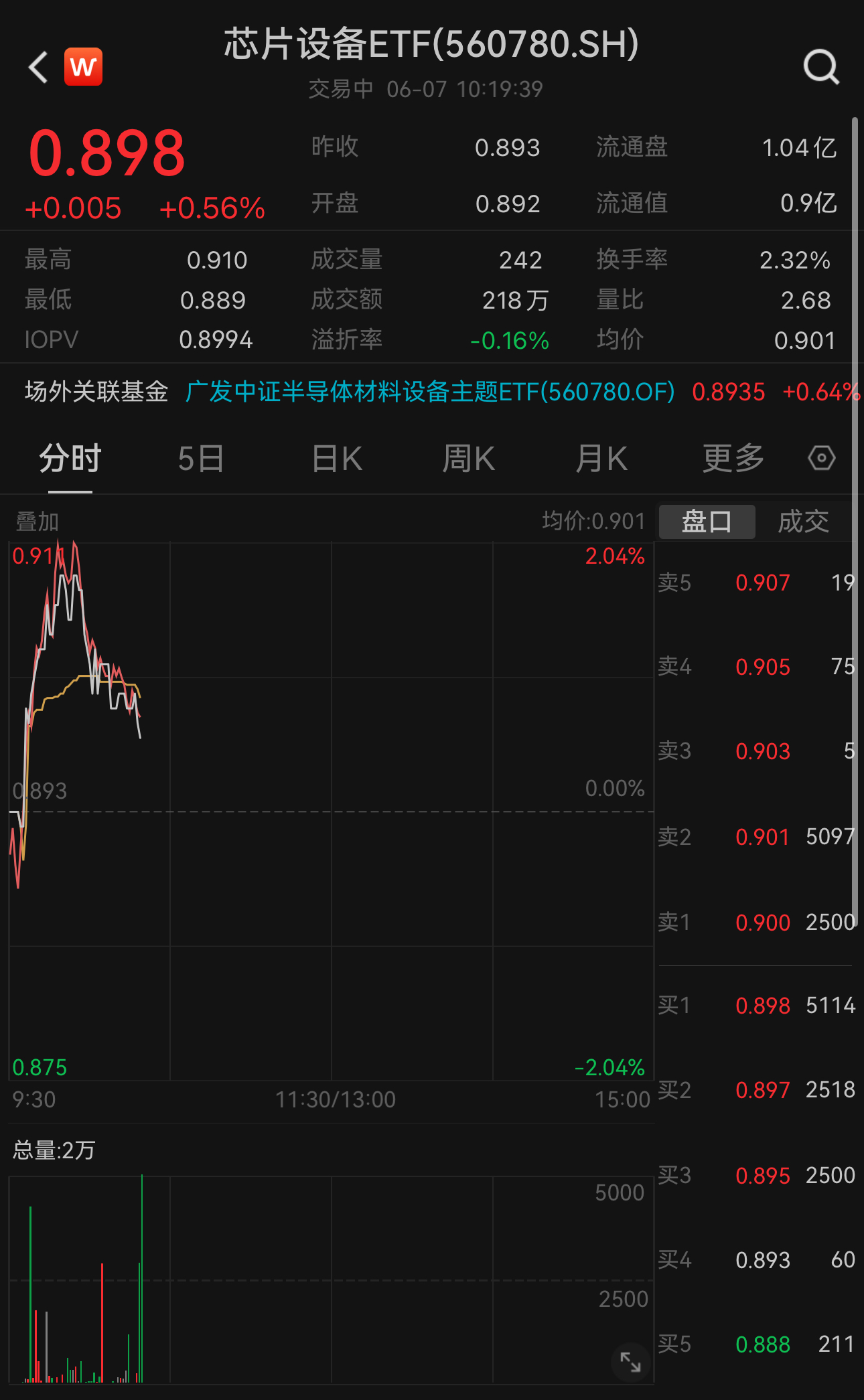 截至10:19,芯片设备ETF(560780)盘中维持升势现涨0.56%,连续五天上涨,成交额达218万元,市场交投活跃,成交额持续扩大。