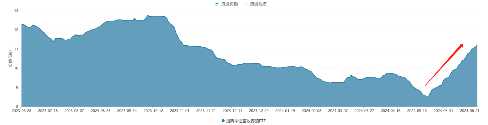 相关标的上,$畜牧养殖ETF(SH516670)$在调整之际,连续获得资金布局。数据显示,该ETF自5月21日至6月26日份额连续26日增长,阶段增幅近32%,目前份额已经来到了11.21亿份。