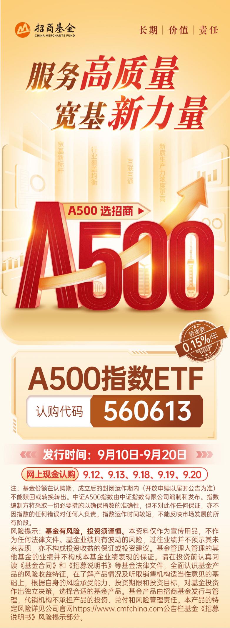 根据中证指数官网,截至2024年8月30日,A500指数样本股覆盖全部35个中证二级行业及92个三级行业,二行业覆盖度100%,三级行业覆盖度93%,高于主流宽基指数。