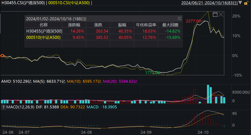 与此同时,网罗AH核心资产的沪港深500ETF基金(517080)也受到市场关注,标的指数沪港深500指数年初至今涨幅14.26%,高于中证A500指数的9.45%。截至10月16日,沪港深500ETF基金(517080)最新规模4.6亿元,规模高居同类第一,成交额也同样位居同类第一!
