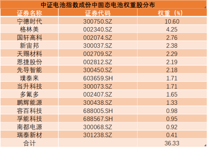 看好新能源板块的朋友可以关注一下电池ETF(561910),该ETF跟踪的是中证电池主题指数。该指数新能源概念占比接近90%,其中电池占比超过62%,光伏设备占比接近20%。该指数精选优质核心电池龙头个股,如阳光电源、宁德时代、亿纬锂能等。而且该指数成份中“固态电池”概念股占比接近四成!配置价值很高,建议趁低位反弹之际一键布局。场外投资者可以借道联接基金(A类:016019;C类:016020)介入。