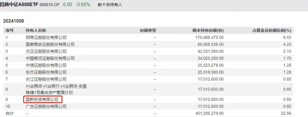比如从最新持仓数据来看,国新投资有限公司就已经现身跟踪A500指数的A500指数ETF(560610)的前十大持有人。