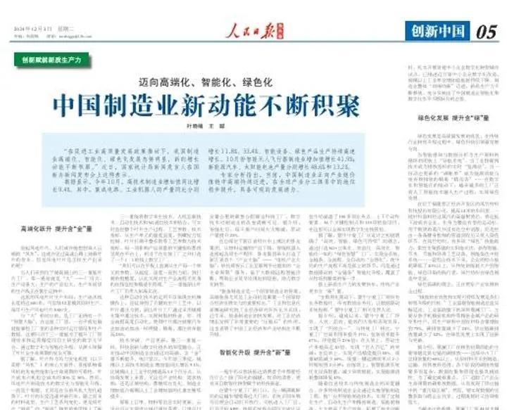 12月3日,《人民日报》海外版刊发《创新赋能新质生产力》专题文章,深入报道了工业富联可持续灯塔工厂运用人工智能、物联网等前沿数字化技术,不断提升生产运营含“绿”量,实现企业可持续发展的创新探索。