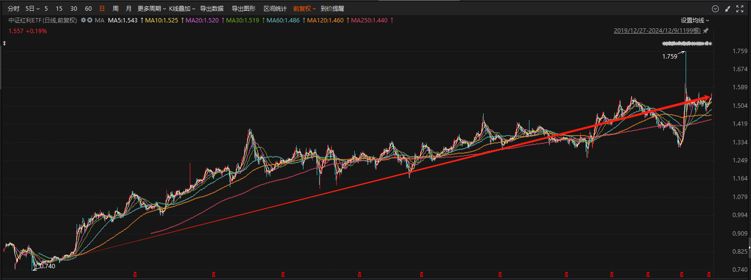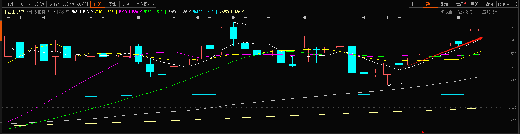 昨日,A股再迎震荡分化行情,三大指数集体收跌,而同时红利板块再次迎来逆市翻红。ETF方面,中证红利ETF(515080)上涨0.19%,5日均线走出一副平稳上升的态势。