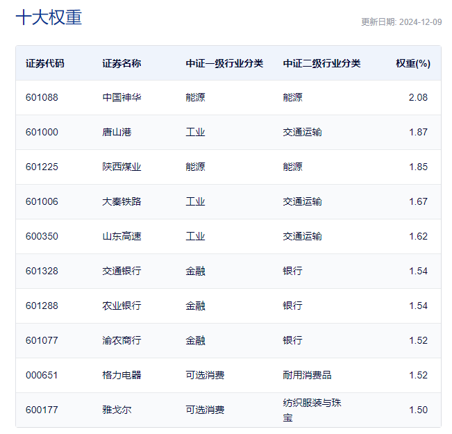 从中证红利指数权重分布上来看,个股之间占比较为均衡,前十大重仓股占比还不到17%。因此股价受单一个股波动影响很小,风险很小,或更适合当前的布局。没有股票账户的也可以通过联接基金(A类012643;C类012644)进行布局。