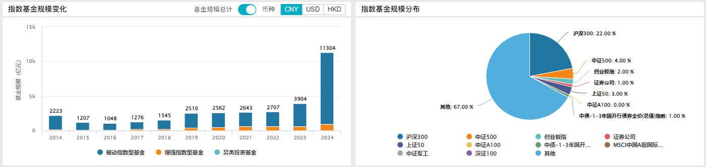 而在上述沪深300指数基金规模的快速增长中,增强指数基金产品规模增长迅速。根据Wind数据,截至2024.12.06,沪深300指数增强基金的规模为926.61亿元,较2023年的572.59亿元,增长约61.8%。