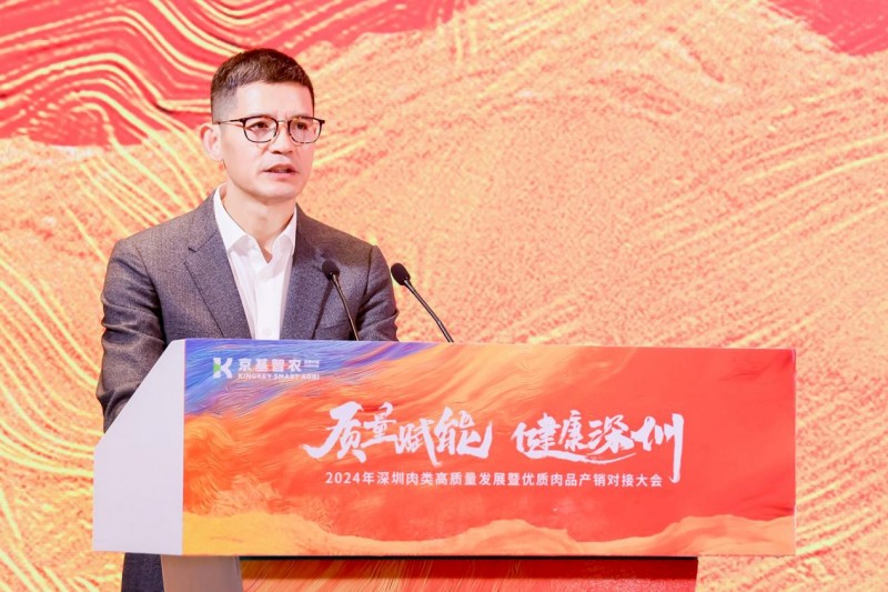 会上,深圳市市场监督管理局党组成员、副局长洪隽指出,“从源头到餐桌的全方位食品安全守护是一项系统工程,更是一项社会共治工程。”他强调:“深圳正在努力打造一个更加安全、透明、可持续的肉食品市场体系,以保障市民的健康安全。此次大会,京基智农与深圳四家国家标准化屠宰示范场及多家经销商签署合作协议,这一举措不仅是市场资源整合的成功尝试,更是推动深圳肉类产业高质量发展的重要一步。”