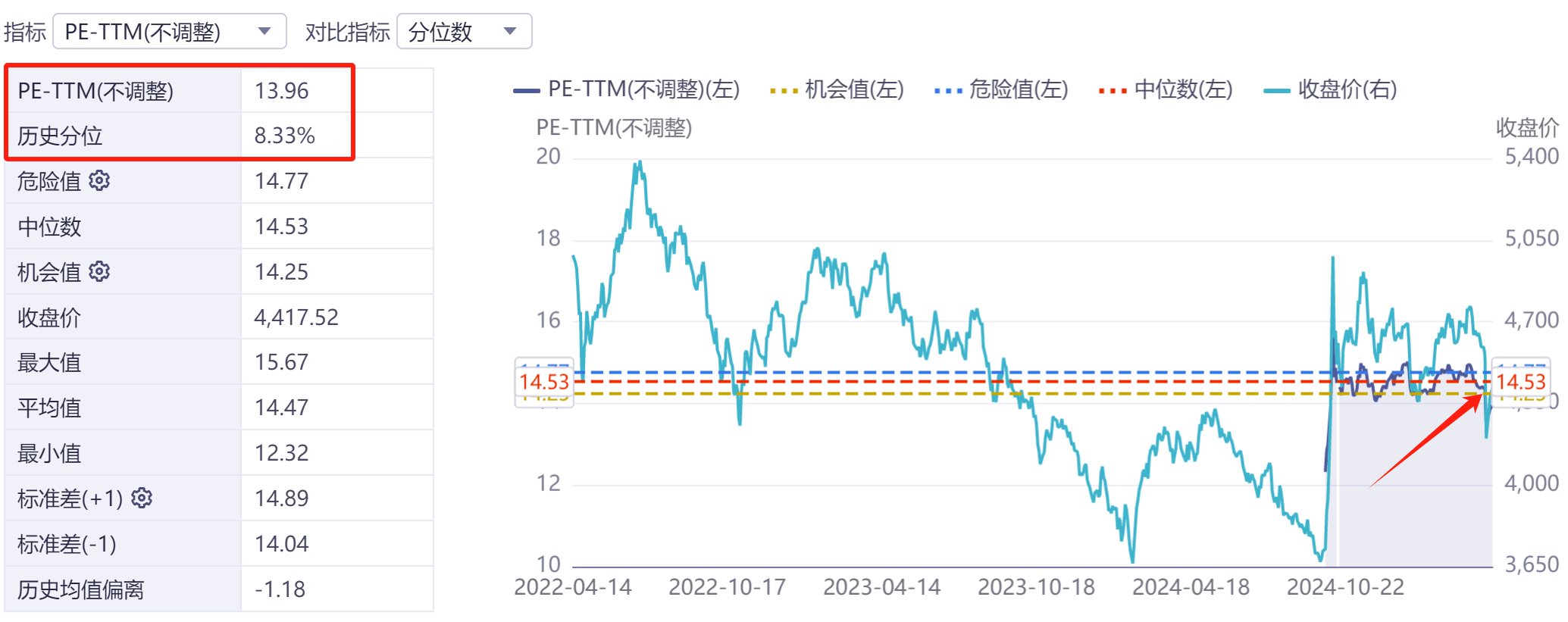 中证A500去年最大回撤15.16%,比中证500低4.74个百分点,波动风险明显降低。截至4月14日,指数13.96倍市盈率处于8.33%的历史分位,较标普500折价超40%。