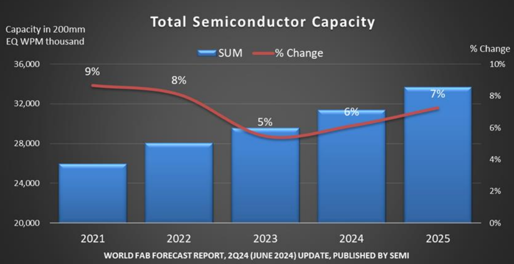 这一点有数据有真相:根据SEMI预测,全球半导体产业今年将启用32座晶圆厂,半导体晶圆制造产能将同比增长7%,达到每月3370万片。其中,中国大陆地区产能增速持续领跑,预计今年产能规模将突破1010万片, 维持两位数同比增速,占全球总产能比例进一步提升至约30%。