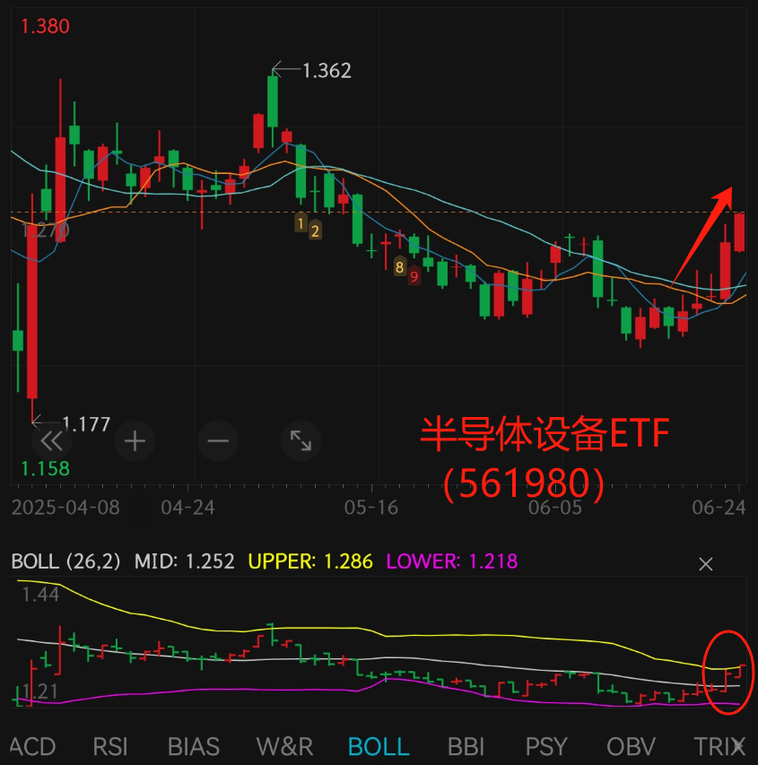 周末经过“豁免权”的发酵,这周更是全面爆发,攻坚国产替代核心环节的半导体设备ETF(561980)自阶段底部持续拉升,已经成功录得五连阳并突破布林线上轨,很有势不可挡的趋势。