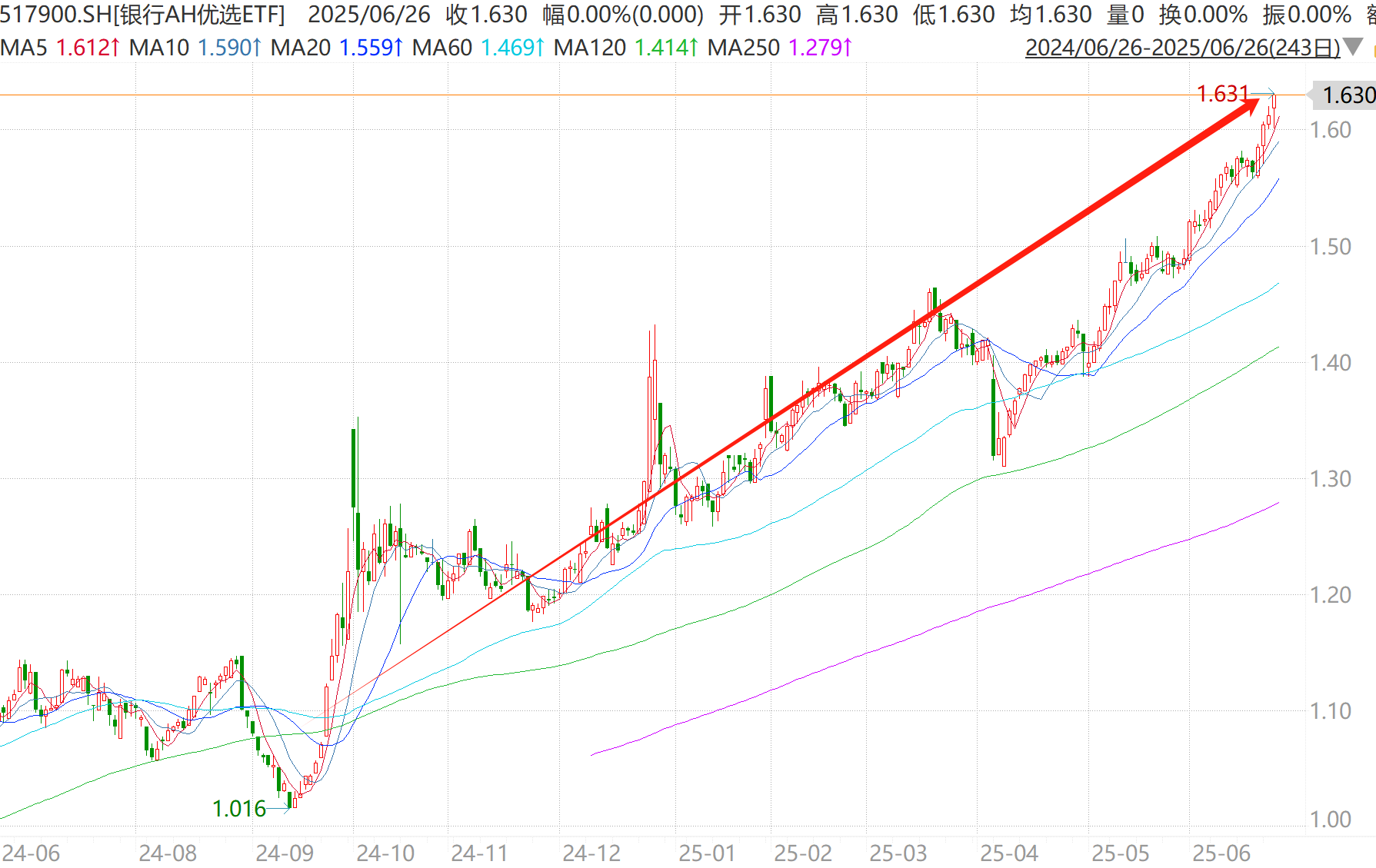 在这场被称为“大象群舞”的行情中,有一只ETF格外引人注目:银行AH优选ETF(517900)年内涨幅近25%,基金份额增长323%,持续刷新历史纪录。