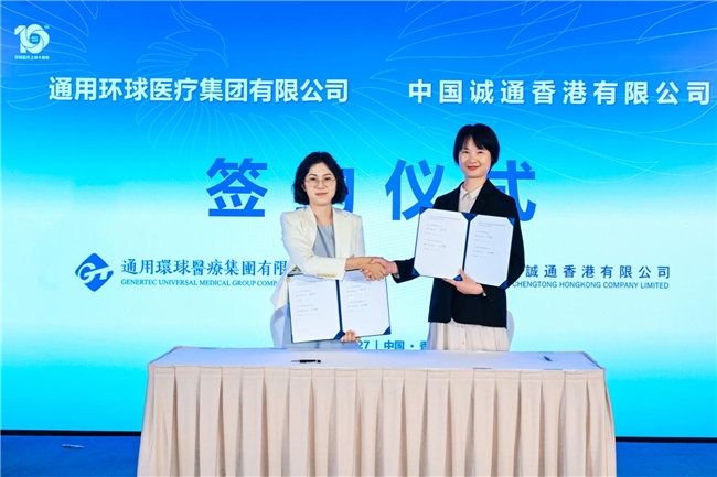 环球医疗总会计师王诗楠与诚通香港总会计师孙洁女士代表双方签署协议