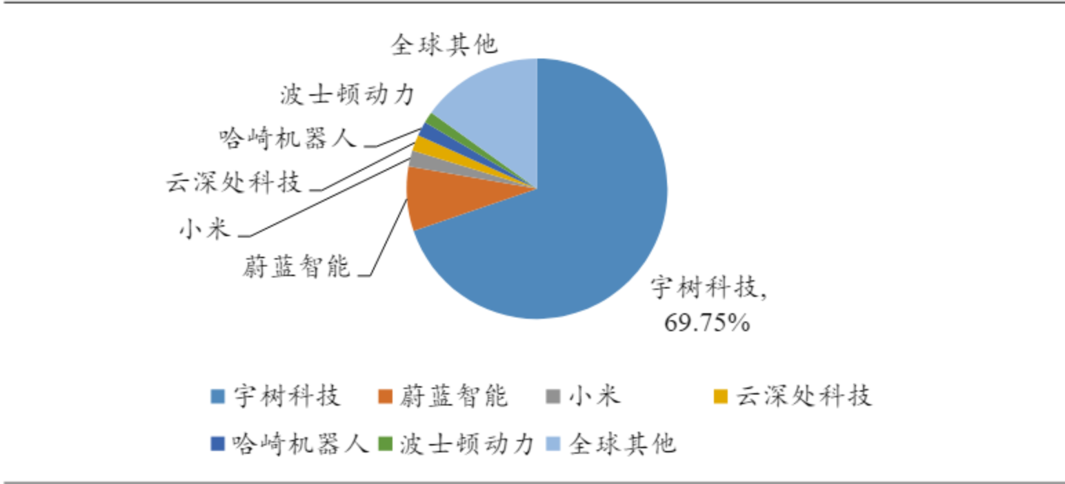 图:2023年全球机器狗销量中,宇树市场份额接近70%(来源:开源证券、GGII)