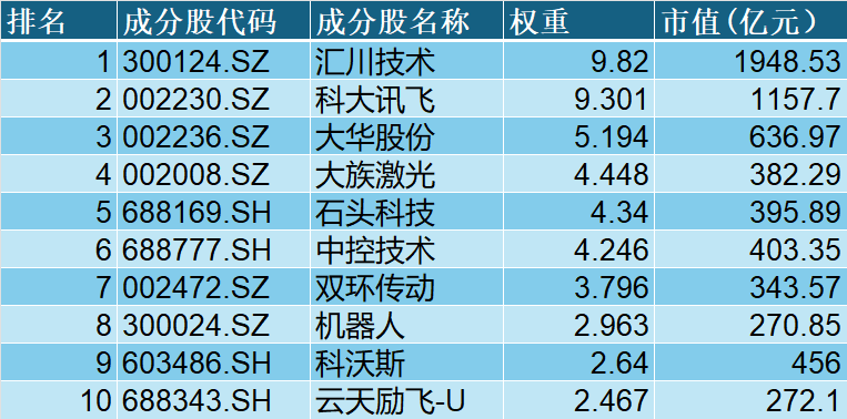 表:中证机器人指数前十大成分股(来源:中证指数公司,Wind,数据截止2025年12月1日)