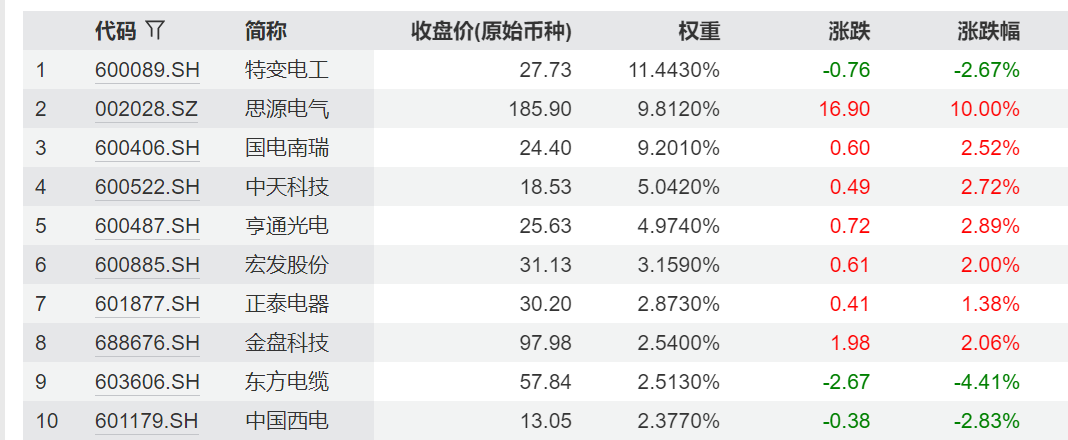 电网设备主题指数(931994.CSI)1月16日收涨1.95%,盘中最高触及2981.70点,创2014年6月30日基日以来最高记录。80只成分股(涵盖特高压产业、智能电网建设)当日有61只收涨,其中电科院20cm涨停,汉缆股份、宏盛华源、思源电气、积成电子10CM涨停,派瑞股份涨12.90%、红相股份股份涨11.33%。
