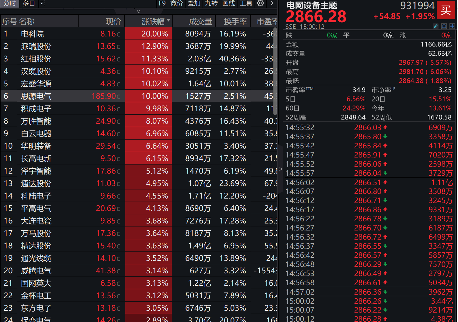 AI“电荒”遇国家4万亿强心针!电网设备主题指数创近12年新高,成分股纷纷涨停