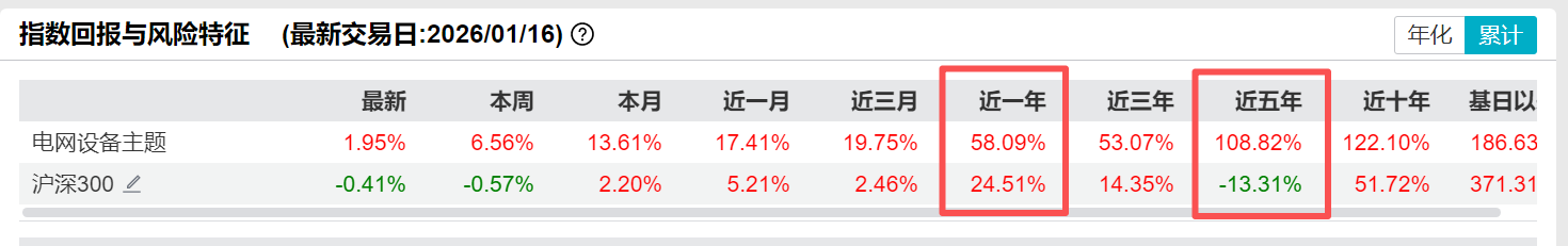 相较于其他热门成长赛道,中证电网设备主题指数(931994)最新PE-TTM为35.27倍,具备较高的安全边际和性价比。(截至2026年1月16日数据)