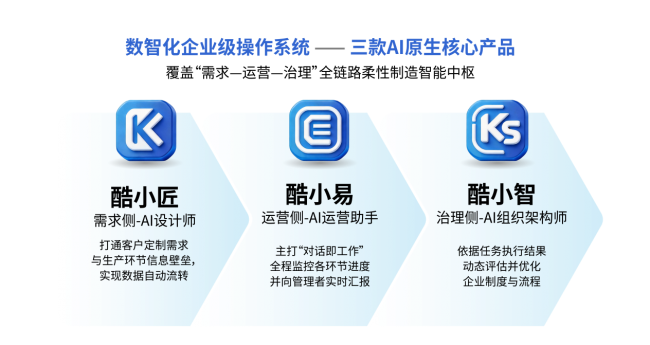 其中,“酷小匠”打通客户定制需求与生产环节的信息壁垒,实现从客户创意到车间生产的数据自动流转,无需人工转译;“酷小易”主打“对话即工作”模式,可将AI生成的策略实时转化为具体任务,全程监控各环节进度并向管理者实时汇报,保障任务高效推进。“酷小智”助力企业实现敏捷试错、持续迭代。支持自然语言开发与零代码应用生成,让业务人员可直接参与创新实践。