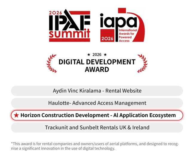 IAPAs 奖项是全球高空作业平台及设备租赁行业最具权威性、影响力的国际专业奖项,评选以专业性、创新性、行业引领性为核心标准,重点考量数字技术对行业共性难题的破解能力、落地实效与行业推广价值,是全球设备运营领域技术创新实力的核心评判标杆。